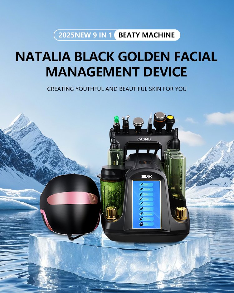 Natalia Black Golden 9 in 1 Oxygen Facials Skin Care Cleaning Analyzer Hydro Facial Machine