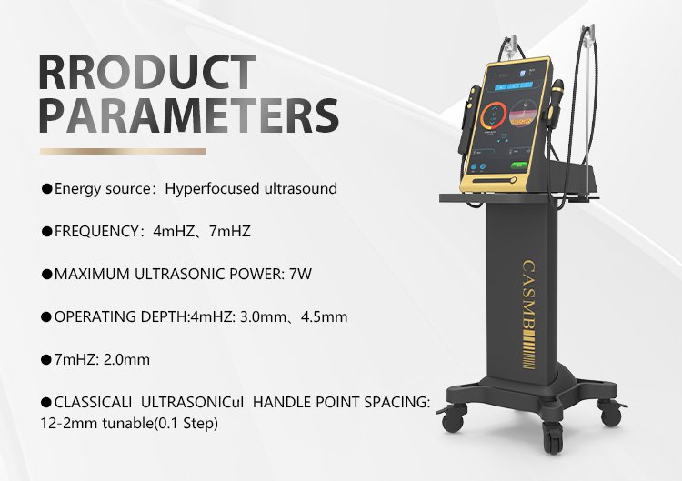 Feature: High Intensiy Foused Ultrasound technology Quartet facial treatment Probe with power ful effect 7D-Suspended Ant i – aging System Macro & Micro Focused Ultrasound system