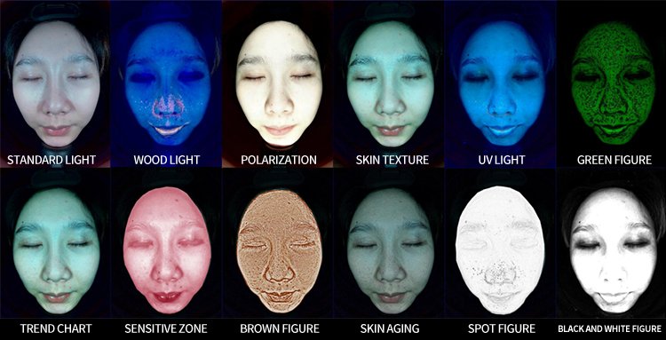 Feature:48 million high-definition pixels 5 spectrum lights 3D perspective technology AI analytic 12 skin image analysis